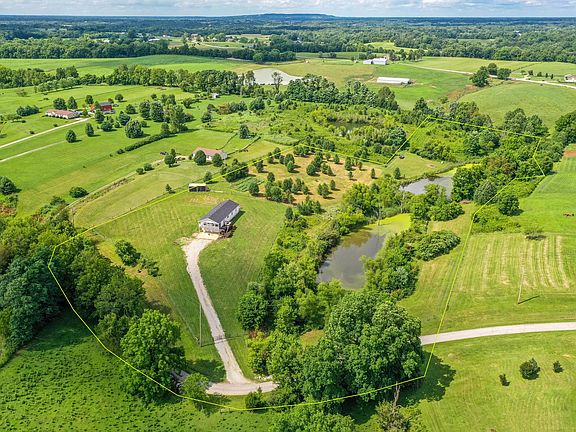 Here is the thriving mini-farm you've been dreaming of! Only 45 minutes from Louisville and 45 from Lexington. 8.9 acres fully fenced with 2 large ponds, cleared areas and also areas with shade trees. Bring your animals and take advantage of the new chicken coop and goat house. An organic garden is fenced and abundant with fresh veggies. The 4 bedroom, 3 full bath home has an open floor plan and an abundance of natural light. The home is move-in ready with a finished basement complete with man-cave and 2-car garage. The views are spectacular and the possibilities for adventure are endless.
