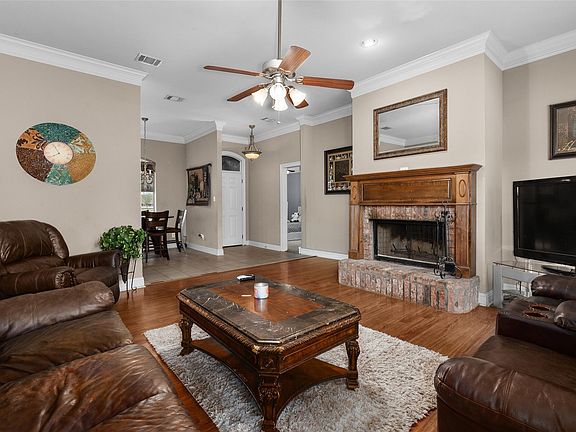 Tuscany Villas Subdivision – This beautiful home offers a warm and inviting living room featuring a gas fireplace and a lovely view of the covered patio. The eat-in kitchen provides abundant counter space, a pantry, and excellent storage options. A large utility room adds even more convenience with additional storage. The gorgeous primary suite includes a tray ceiling and a spacious primary bathroom with a double vanity, separate jetted tub, and walk-in shower. Additional bedrooms are generously sized to accommodate a variety of needs. Outside, you’ll enjoy a large corner lot with a privacy fence and a covered patio perfect for relaxing or entertaining. The home features ceramic tile and luxury vinyl tile flooring, along with ceiling fans throughout. A 2-car garage completes this fantastic property.