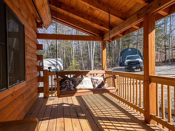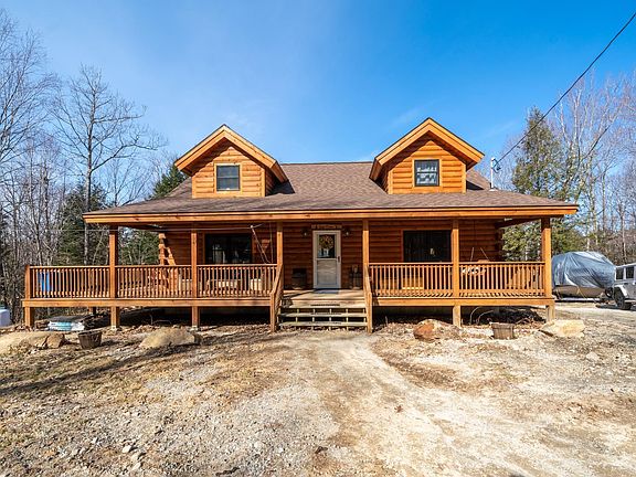 Under Agreement - Open Houses are canceled, apologies for any inconvenience Wilderness lovers rejoice! This stunningly built Log Home, just 4 years young awaits its next owner. Set on 13 beautiful acres with water frontage graciously sloped from the home. Upgrades include a larger footprint with a wraparound covered porch and stunning hardwood throughout. The first floor includes the kitchen with island and granite counters, a dining area overlooking the backyard toward the pond and open concept to the large living room. Tucked aside on the first floor is also the primary bedroom suite with full bathroom! The second-floor includes another full bath and 2 additional large bedrooms and an office, suitable for a 4th bedroom! Dormers add extra space to this very thoughtful design and floor plan. To top it off the walk out partially finished basement offers even more potential for a game room, bedroom, office space or whatever your mind can dream up! Central Heat and AC powered by propane along with a whole house on demand Generac Generator make this home perfect for anyone looking for all the amenities and privacy and only 45 minutes from Manchester airport!