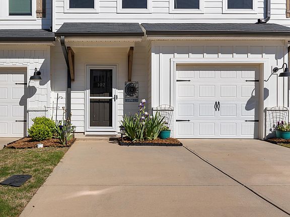 Welcome to 102 Grey Oak Trail - a charming two story townhome offering a spacious and functional layout, with just over 1700 square feet of living space in like-new condition! The main level has an open concept with a roomy entry way, complete with a mudroom bench, cubbies and hooks to keep you organized, plus a coat closet for additional storage and a half bath. The kitchen features granite countertops and a beautiful subway tile backsplash, gas stove, built-in microwave, spacious pantry closet and island seating, plus a newly installed instant hot water tap! All three bedrooms are located on the second floor, along with a closet-style laundry room, a second full bath and additional linen closet. The primary bedroom has a tray ceiling, a walk-in closet and full bath with two sinks and a walk-in tile shower. The neutral color palette throughout provides a warmth that will make you feel right at home, and lends itself to any style or decorating preference. The spacious back patio with a wooded backdrop and beautiful landscaping truly sets this home apart, with plenty of privacy allowing you to maximize the enjoyment of your outdoor space! Other features include a screened storm door to allow in some fresh air and additional natural light, a tankless gas water heater, and blinds throughout, plus an attached 1 car garage, providing space for parking a small car, additional storage, or workshop/studio! The paved concrete driveway is large enough to accommodate two cars, with overflow parking available. Branchwood is a newer boutique townhome community of 42 total units, with farmhouse-inspired exteriors and a mix of board and batten, lap and cedar shake hardboard siding. Residents enjoy a peaceful setting in a central, convenient location tucked away on a quiet street off of Henderson Gap Road, plus common areas including a dog park and fire pit. The monthly HOA provides low-maintenance living with lawn and exterior maintenance, street lights and termite contract included, all for just $140/month! Schedule your private showing today!