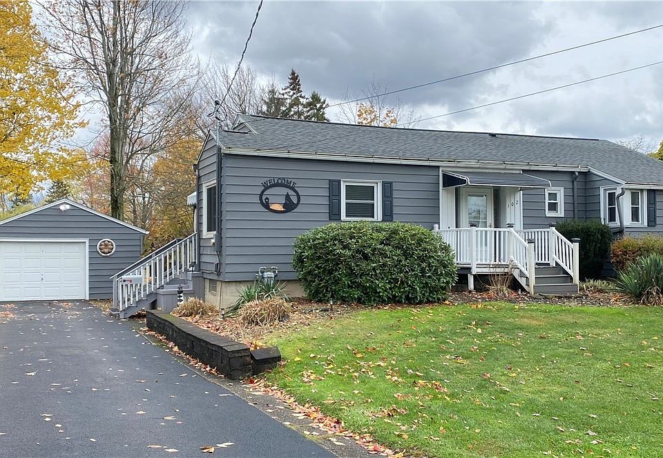 Welcome home to 102 Grove Street. This well cared for maintenance free 2 bedroom 1.5 bath ranch that sits on a double lot has so much to offer. This home is ready to just move into. Updated fully applianced kitchen with plenty of cabinets and storage and a nice coffee bar. Open floor to the dining room that opens to the large living room. Center entrance foyer. Large primary bedroom with built in dresser and large built in closets. Additional nice size bedroom. Updated full bath just off the bedrooms. Let's head downstairs to the amazing finished basement great area to watch football games and enjoy movie time or just relaxing. Laundry room with additional half bath. Updated roof, furnace, a/c and much more. Let's head out to the large deck with covered gazebo overlooking an amazing backyard that goes back almost 300 feet. Large shed and a 1.5 car detached garage complete this fantastic opportunity to own this turn key home and enjoy inside and out !!!!!!