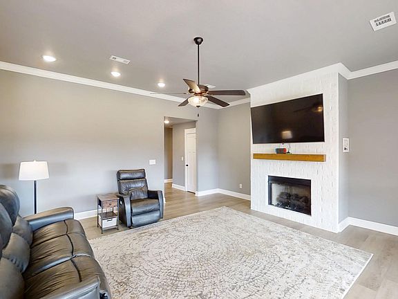 Brookland School District. This all brick 4 bedroom, 2 bathroom home has 2,077 SqFt and sits on 0.29 +/- of an acre inside the Whispering Hills Subdivision. Having a split floor plan, enjoy the best of both worlds, a spacious layout and privacy with the primary suite. Featuring a tray ceiling, dual walk-in closets, dual vanity with granite countertops, a soaker tub, and a custom tile shower. Large living room area with tall ceilings, huge windows creating plenty of natural light, and a gas log fireplace. The kitchen features granite countertops, stainless steel appliances, and a breakfast bar with dining area. Additional features include a front porch, large backyard, a covered deck/patio, storm shelter in the garage and a large driveway with extra parking pad. Call to set a showing today! Appointment needed for showings.