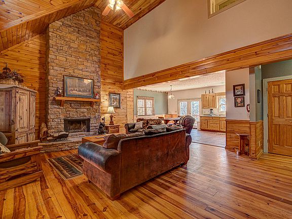 RIVER VIEW CABIN - This 4 Bedroom, 3 Full Bath and Half Bath Cabin features a Large Great Room with Stone Fireplace, Wood Floors, Large Master on Main Level, Large Master Bath with Easy Access to Hot Tub, Laundry on Main, New Deck that Over Looks A Beautiful Bend in the Coosawattee River, Full Finished Basement with Theater Room, Game Room, Bedroom and Full Bath and a Rocking Chair Front Porch. Close access to the Coosawattee River, Gated Community with Lots of Amenities. Rental History Available.