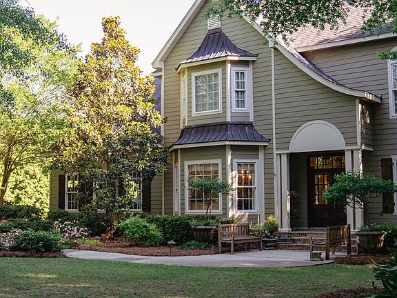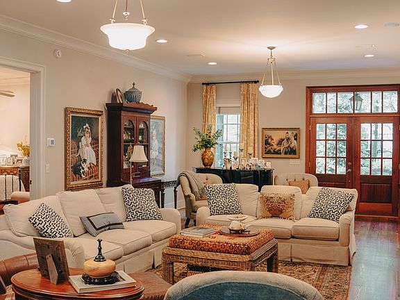 Set on a serene tree-lined cul-de-sac on 1.5 acres within prestigious Spann Farm, this elegant traditional residence epitomizes refined luxury living. A charming pea-gravel path and shady front lawn beckon you inside, evoking the charm of a Garden&Gun feature. Inside you'll be greeted by timeless details like pine floors and Baldwin hardware, a formal living room and expansive dining area with a lovely bay window. The newly remodeled kitchen, boasts custom cabinets and top-tier appliances, seamlessly flowing into a sunlit breakfast nook with built in banquet seating. A sumptuous first-floor primary suite has a private porch, custom walk-in closet/craftroom, and spa-like bath. Upstairs, discover three spacious bedrooms with en-suite baths and soaring ceilings, connected by a spacious second living space. Outside, a guest house offers versatile living and entertaining spaces, complete with kitchenette, bedroom and full en-suite bath. The meticulously landscaped grounds feature a covered patio, French-style garden, and a whimsical "fairy garden" amidst mature hydrangeas. A separate structure houses a sprawling woodworking shop, a particularly photoggenic potting "shed," and additional storage space. Every corner exudes elegance and tasteful luxury, making this residence simultaneously grand and inviting. Welcome to the epitome of Southern living in Dothan's most coveted gated community.