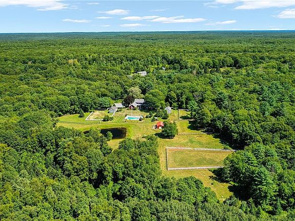 Enter through a grape covered pergola and step into the 1800's, yet with all of the luxuries of today. Steeped in history, this delightful home is the perfect combination of old and new. This beautiful and unique gentlemen's farm is set on a picturesque 52+ acres and has retained all of its magic and charm, both as an equestrian property and also in a former life as a Christmas tree farm. Some outdoor features include: beautiful gardens, a majestic forest, manicured grounds with in-ground pool, 5 horse paddocks, 2 car garage, 3 tractor garages, and a 2 stall barn with turnouts. The inviting sunlit interiors include original wide plank hard pine floors, oversized rooms, period details, and a beautiful master suite with updated bathroom. The renovated kitchen comfortably seats 6 at the bar and has a view of the 9'+ wide fireplace, a refined dining room features beautiful period details, and a recent living room addition offers amazing cathedral ceilings, wet bar, and antique-mantled fireplace. The inviting double living room with skylights has French doors leading to a spacious sun room with sliders on all sides that lead out to the lovely gardens and views of the rear yard and pool. There are 3 additional bedrooms with 2 full and one 1/2 baths to accommodate family and guests. Whether your dream is to ride your horse along wooded trails, entertain family and friends in stylish comfort or curl up with a good book in the sunroom, this beloved home is beyond special.