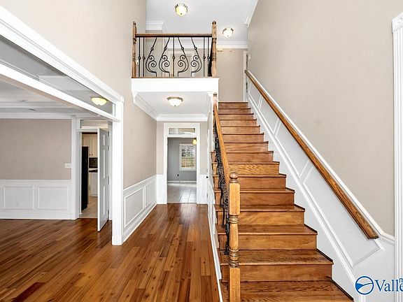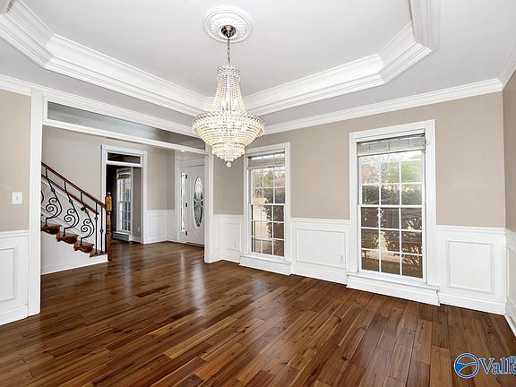 Assumable VA Loan at 2.75% OR a 5.9% rate buy-down with preferred lender! Two-story foyer with wood floors, new fixtures, and fresh paint. Wrought iron spindles lead upstairs. Main level features 9’ ceilings, formal dining with tray ceiling and wainscoting, plus a flexible office/living room. Hearth and breakfast rooms overlook a private backyard with pergola and deck. Kitchen offers granite, painted cabinets, and stainless steel appliances. Updated baths including custom tile shower. New roof, HVAC, gas water heater, and dishwasher (2023). Community pool, tennis courts, and access to Bradford Creek Greenway. Easy access to Mill Rd, Mill Creek Elem., I-565 and Madison City Schools.