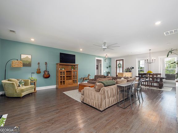 Step into serenity with this pristine home on a spacious half-acre corner lot. The open floor plan welcomes you as you enter with a warm, light-filled family room and dining room. Designed with a split-bedroom layout, the home offers three spacious bedrooms and three full baths, including a large primary suite featuring a spa-like bathroom, quartz double vanity, glassed entry tiled walk-in shower, and a huge walk-in closet. The kitchen is oversized and well-appointed with quartz countertops, Frigidaire appliances, a breakfast nook or sitting area, custom pantry shelving, and a nearby laundry room with washer and dryer included. One guest bedroom has an ensuite bath and walk-in closet; the third bedroom has a door that connects it to a full guest bath. Enjoy outdoor living on the screened porch overlooking a private backyard with wrought iron-style fencing, a designated dog run with direct access via a dog door from the primary suite, and a peaceful forested buffer beyond the fence line. The home also features a covered front porch, side-entry two-car garage, and thoughtful upgrades including an HVAC UV light filter, Aquasana whole-house water filtration system, Vivint home alarm system, irrigation system, termite bond, and available fiber internet. **Most furnishings and select artwork are available for purchase** Ideally located near I-95 (Exit 29) for quick access to Jekyll Island, St. Simons, Brunswick, Savannah, and Jacksonville.