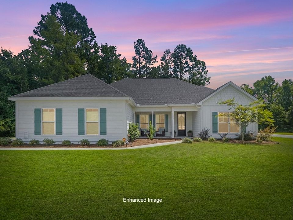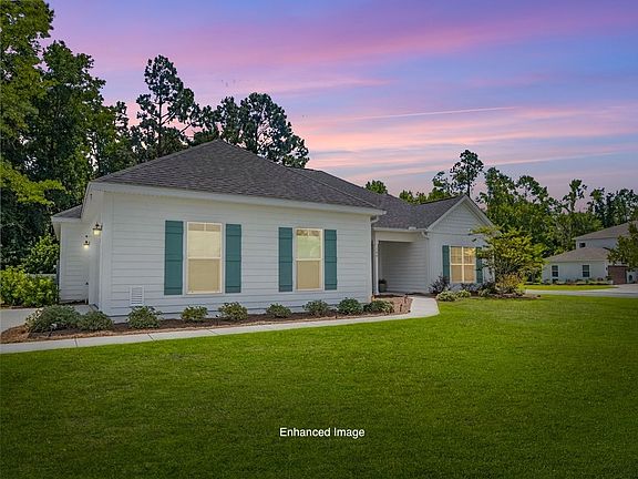 Step into serenity with this pristine home on a spacious half-acre corner lot. The open floor plan welcomes you as you enter with a warm, light-filled family room and dining room. Designed with a split-bedroom layout, the home offers three spacious bedrooms and three full baths, including a large primary suite featuring a spa-like bathroom, quartz double vanity, glassed entry tiled walk-in shower, and a huge walk-in closet. The kitchen is oversized and well-appointed with quartz countertops, Frigidaire appliances, a breakfast nook or sitting area, custom pantry shelving, and a nearby laundry room with washer and dryer included. One guest bedroom has an ensuite bath and walk-in closet; the third bedroom has a door that connects it to a full guest bath. Enjoy outdoor living on the screened porch overlooking a private backyard with wrought iron-style fencing, a designated dog run with direct access via a dog door from the primary suite, and a peaceful forested buffer beyond the fence line. The home also features a covered front porch, side-entry two-car garage, and thoughtful upgrades including an HVAC UV light filter, Aquasana whole-house water filtration system, Vivint home alarm system, irrigation system, termite bond, and available fiber internet. **Most furnishings and select artwork are available for purchase** Ideally located near I-95 (Exit 29) for quick access to Jekyll Island, St. Simons, Brunswick, Savannah, and Jacksonville.