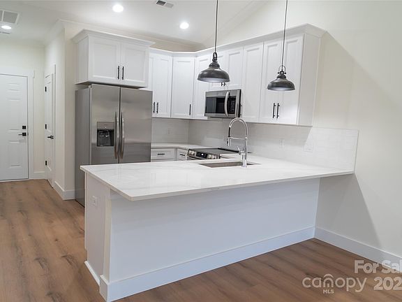 Elegant single-level living awaits in Henry’s Glen. This brand-new townhouse, just minutes from downtown Morganton, offers an open-concept design with a soaring vaulted great room that blends the living, dining, and kitchen areas. A cozy gas fireplace anchors the space, while the chef’s kitchen features custom cabinetry, quartz countertops, and a full suite of appliances.