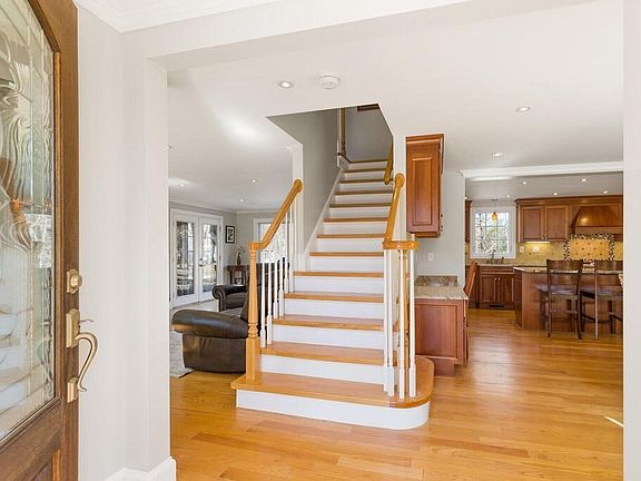 Gorgeous home with so much to offer! Remodeled and expanded over the past 12 years, this one has it all! 5 bedrooms, 3.5 baths with a 3 car heated garage on an acre with a potential in law/au pair suite. Open concept 1st floor includes; beautiful kitchen with cherry cabinets/stainless appliances/granite counters, dining room, living room w/ inset wood stove, mudroom with built-in cubbies, and 1/2 bath. The 2nd floor consists of 4 bedrooms; 3 with hardwood floors, and a master suite with bathroom, walk-in closet, & office. 2nd floor also includes a playroom, full bath and a separate laundry room. A one story building attached to the garage houses a bedroom, den, full bath & wet bar area. In addition, there is another room in the building currently used as a workshop. Outside is made for entertainment with an above ground pool incorporated into the composite deck, as well as a patio with fire pit, all set on a great yard!