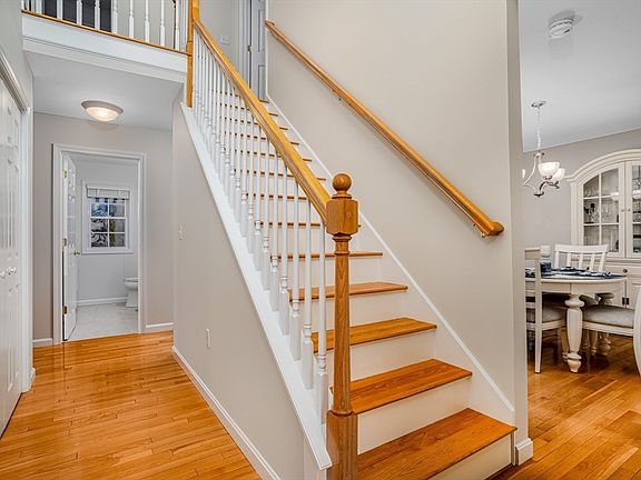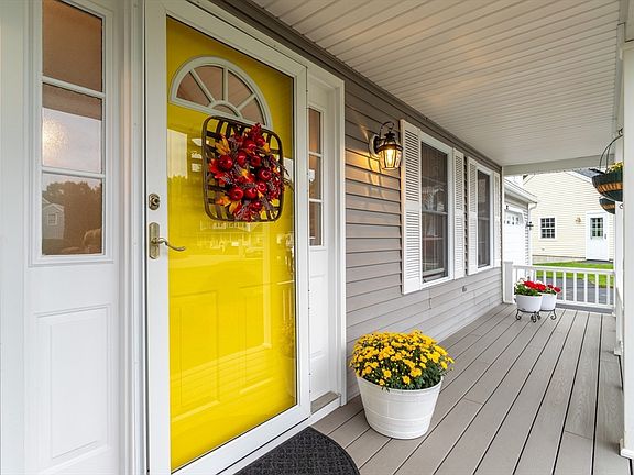 Picture Perfect & Immaculate! describes this lovely 3 bedroom Colonial located at the end of a cul-de-sac abutting the woods in desirable North Leominster. A wide, full length front porch invites your guests up to the front door. Enter the bright two-story foyer with gleaming hardwood flooring & gracious staircase with chandelier and remote controlled shades. Hardwoods flow throughout the 1st level from the open concept all-white kitchen & granite island, to the spacious dining room, into the front to back living with real wood burning brick fireplace. That open staircase leads up to 3 bedrooms.The king-sized main bedroom has a cathedral ceiling, walk-in closet, and private full bath! Two additional bedrooms with a 2nd full bath complete the 2nd floor. The full walkout basement currently serves as the Ultimate "Man-Town" and affords the opportunity to add an additional 1700+ square feet of living space. Relax after a long day under a Sunsetter awning on your private composite deck!