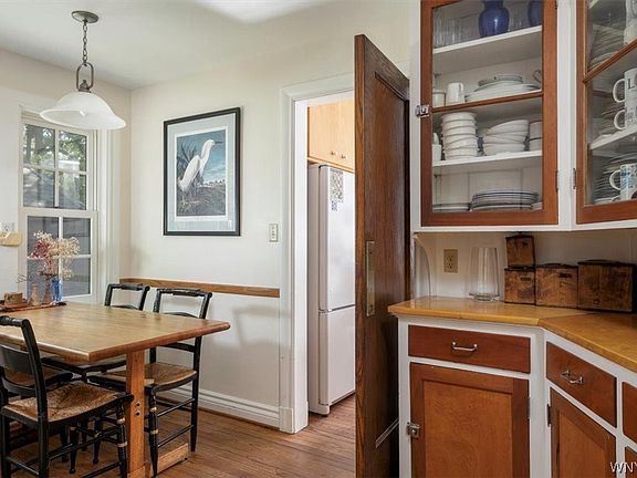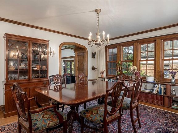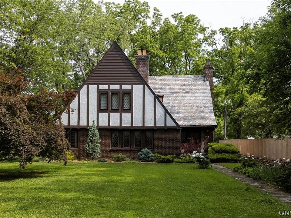 Stately Tudor situated on a beautiful tree lined street in Snyder. This charming home features original natural wood work, leaded glass windows, arched doorways, solid wooden doors and lovely hardwood floors thru out. Welcoming gracious entryway, steps down to large living room boasting wood burning fireplace(NRTC) and natural wood French doors lead to cozy sun room. Spacious formal dining room with natural lights, office with full bath (could be used as a bedroom). Kitchen includes breakfast room with a built-in pantry as well as a walk-in pantry. Master bedroom / bath & 3 additional bedrooms, full bath & large landing with built-ins complete the second floor. Additional features include 3 car garage, outdoor patio, park like backyard. Furnace 2021. Truly one of a kind home! 2022-06-23