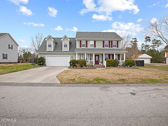 Welcome to Bohicket Landing! Just under 2 acres, outside of city limits, and only a short 10 min drive to Downtown Swansboro! You will love the space this home offers and do not miss the water access to Queen's Creek from the community boat ramp! The beautifully landscaped front yard makes the house a showcase for the neighborhood. 4 bedrooms, a designated office/bonus room, and 3.5 baths! 102 Lafitte features a formal dining room, living room, and a spacious kitchen with an additional eat in area. The large owners suite is located on the main level. It features a ensuite bathroom with dual sinks and an upgraded step in shower. A screened in porch directly off the owners suite provides a shaded and bug-free area to enjoy the outdoors. This area is about 16' long and 6' wide. Upstairs find an oversized additional owners suite that offers an attached bath and walk in closet. Find 2 other bedrooms and bonus room, that share a hall bath. The backyard is your own personal oasis. The main work shed is 20'x12' in size. The handyman's dream! It has lighting inside and outside, numerous outlets, a panel box, and even a 220 outlet. Attached to and around the back of the main shed are two additional storage areas. One area is 20'x8' in size and the other is 8'x8' in size. Plenty of room for EVERYTHING! There is a gravel area at the rear of the yard perfect for parking the boat and camper. An extra large fire pit is a welcomed addition in the yard for that nighttime hot dog roasting and smores making. A 20' diameter 4' depth above ground pool with stairs immediately off the deck is wonderful for cooling off during those hot summer days. The pool is designed to be easily set up and torn down for seasonal use. The woods behind the fence provides many hours of bird watching. Venturing into that area you'll find a wetland environment full of exciting adventures and exploration. This home is a must see! Schedule your showing today!