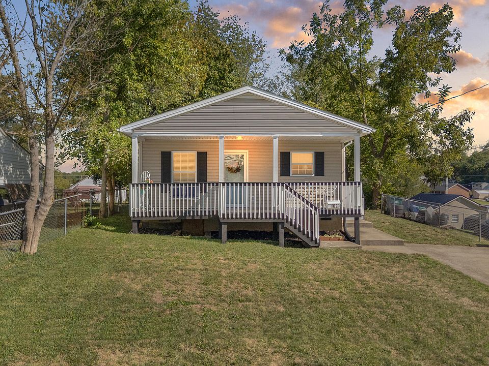 Large living spaceSouthern-style covered front porchPartial fencingShade treesHandsome eat-in kitchenWide drivewayMature trees for shade