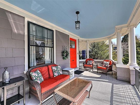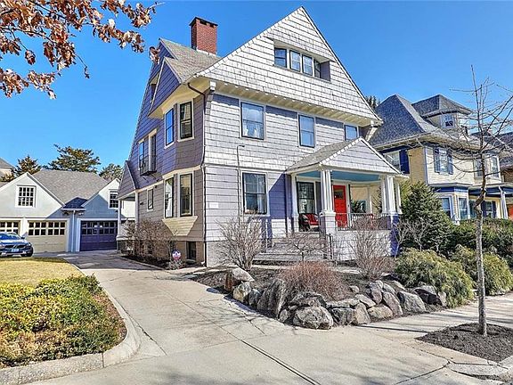 This classic College Hill Victorian has historic details fused with stylish design elements making for an East Side dream home. Step up to the welcoming front porch perched above the streetscape. A delightful sitting area makes for the perfect respite to watch the world go by. The front foyer greets guests with a warm hug as you look to the sun-drenched living room with a fireplace and lovely window seat. Beyond the foyer is the dining room with a bay window for eastern morning light. The remodeled kitchen has painted wood cabinetry, butcher block counter tops, stainless appliances and encaustic tile floors adding a European style flair. Off the kitchen is a convenient mudroom which steps to a deck and patio beyond. A great spot for al fresco dining. A powder room completes the first floor. Upstairs to the second level are two generous bedrooms, full tile bath, a home office or study and a third bedroom or family room with a fireplace. Providing maximum comfort and versatility for families of all shapes and sizes. The top floor has two more spacious bedrooms and a second tile bath. Additional amenities include central air conditioning, a two-car garage and a delightful city garden with mature plantings. This home is centrally located for easy access to the universities, schools, shopping and city parks. Downtown and the train are just minutes away making commuting a breeze. This friendly block even has a list serve providing for a welcoming neighborly experience.