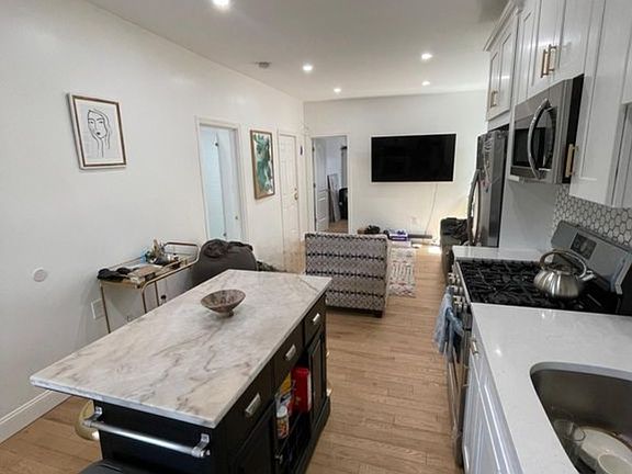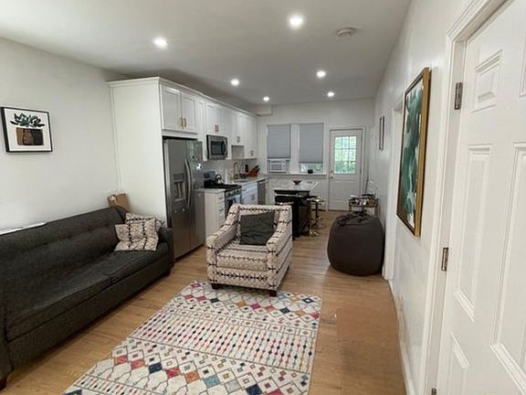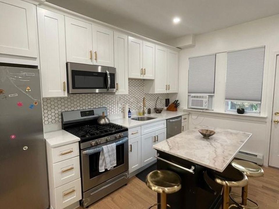 Available Oct 1st. Renovated 2 bed / 1 bath apartment located in Central-Maverick Square of East Boston. This second floor unit features high ceilings, hardwood floors, modern eat-in kitchen, open living/dining room, beautiful tiled bathroom with stand-up shower and laundry in-unit, large primary bedroom with walk-in closet, second smaller bedroom/office (no closet), back patio area. Location is a short commute to Liberty Plaza (Shaw's, CVS, Walgreens, Kappys Liquor, and more) and Maverick Blue Line T station and Waterfront.