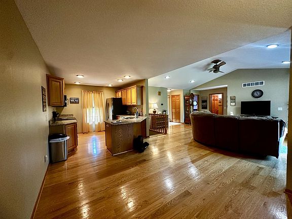 Beautiful custom-built ranch home on 1.13-acre lot. Very inviting open floor plan with 4 bedrooms, 3 baths, and a fireplace. The Master ensuite has a huge walk-in closet, a walk-in shower along with a jacuzzi tub. The kitchen offers granite counter tops and stainless-steel appliances. The lower level has a rec room, full bathroom and another bedroom, along with the laundry and utility areas. The lower-level walks out to a spacious stamped concrete patio area that overlooks a panoramic back yard.  Beautiful setting with country feels but just on the edge of town.