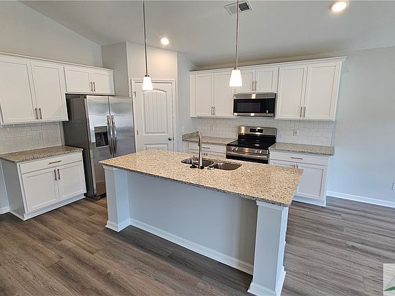 Savannah's most trusted local builder is proud to offer our Spring Valley II TR plan. This home has some excellent features and upgrades including an upgraded front look "Elevation E" with brick ledge, covered back porch with concrete patio extension, 6' vikrell shower in primary bathroom, garage door opener with 2 remotes, pendant lights above kitchen island, large single kitchen sink, click plank LVP wood look flooring in main living area and wet areas, upgraded 36" cabinet uppers in kitchen, granite tops in Kitchen, quartz tops in both full bathrooms, ADT Security package, tile backsplash in kitchen, all stainless appliances including refrigerator in kitchen, and fully sodded and irrigated yard with automatic timer. Completion date is estimated to be March 2025. Pictures, features, and selections shown are for illustration purposes and may vary from the home built. All builder incentives applied.