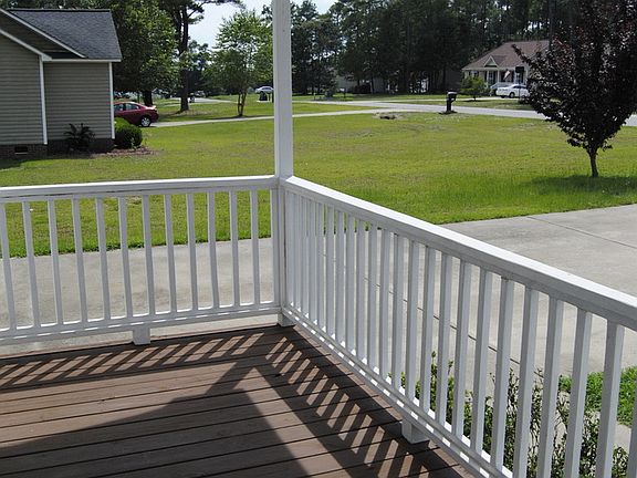 Great house with plenty of upgrades just a short drive from Seymour Johnson AFB! Three good size bedrooms, 2 full baths and an open living room that offers plenty of space for furniture placement. Kitchen has a newer fridge and dishwasher and has lots of cabinets and counter space. The master suite is especially spacious for this size home with vaulted ceilings, a large walk-in closet, dual vanities, and shower/tub combo. Brand new hardwood floors and carpets throughout, and washer and dryer included! The deck out back and large, tree-lined yard with fire pit is perfect for entertaining. This won't last long!