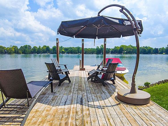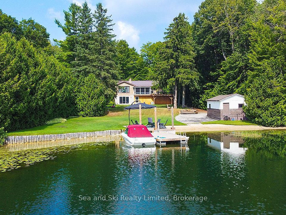 Experience lakeside living at its finest with this stunning, modern waterfront permanent home or weekend cottage. Enjoy the 120+ feet of private waterfront with a sandy, gradual beach perfect for swimming, paddling, and lakeside fun, perfectly situated on the shores of McCullough Lake. Start your day with coffee in the beautiful 3 season sunroom overlooking the backyard and the lake. Just a couple of hours north of Toronto and the Kitchener-Waterloo area, this property offers the ideal blend of convenience, comfort, and relaxation. Host unforgettable gatherings on the spacious deck with family and friends, ideal for dining and entertaining with panoramic lake views. With two guest suites in the lower level there's plenty of room for everyone. The modern, updated home is designed for style and functionality with a custom Kitchen, updated bathrooms and an overall look of beauty. The walk-out lower level provides easy access to the large backyard, beach, private dock, and cozy firepit area, perfect for summer evenings under the stars. This wonderfully renovated cottage is a must see. Book your tour today before it's too late.
