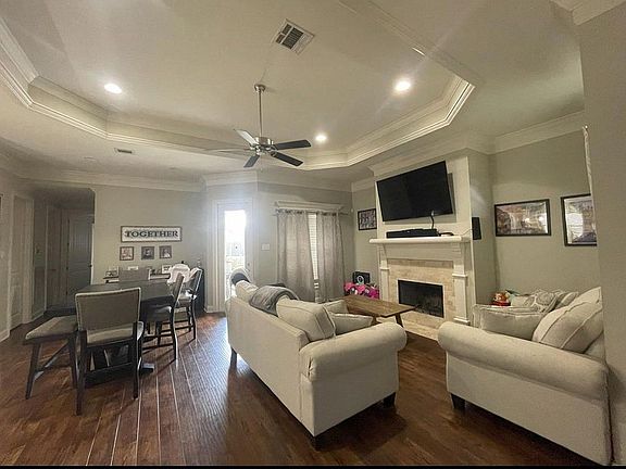 Privacy fenced yardSeparate tile showerCrown accentsCovered back patioStainless appliancesWhite maple cabinetsGranite counters