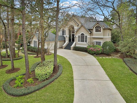 Prepare to fall in love with this stunning Lifeforms home in Cochran\'s Crossing, zoned to Galatas Elementary and The Woodlands High School. Set on a cul-de-sac lot, the curb appeal is grand. Double doors open to an amazing floor plan that offers wooded views as if you are in an elegant tree house. Primary living spaces, including the master suite, are positioned to take advantage of beautiful elevated views of the pool and lush backyard. The huge kitchen island will be the gathering spot for family and for parties. A handsome study is tucked away on a level by itself, offering privacy. The inviting game room anchors the first floor, offering direct access to the large covered patio and outdoor kitchen, equipped with flat screen TV. Views are focused on the pool, rock waterfall and wooded yard. What a perfect arrangement for entertaining! Three secondary bedrooms and 2 full baths are on this level as well. Oversized garage. Front yard maintenance provided by HOA.
