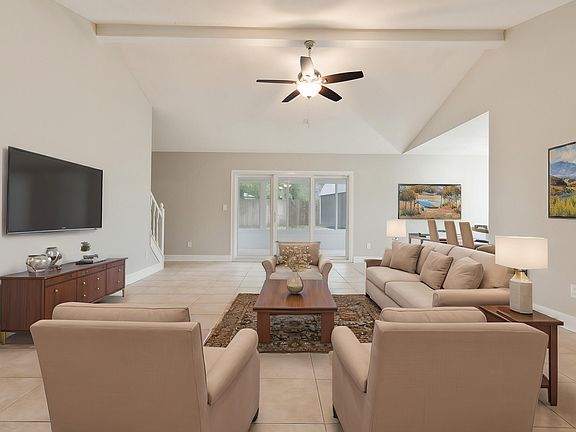 Welcome to this beautifully updated, spacious home in Crestview, Florida, located south of I-10 with easy access to everything the city has to offer and a quick commute via the east side of John King Road. This home has been thoughtfully renovated and features modern upgrades throughout. With a 2021 solar system that's paid off, a 2018 gas water heater, 2021 HVAC (gas heat), and a 2021 roof, you'll enjoy energy efficiency and peace of mind for years to come. Upon entering, you'll be greeted by a large, inviting living room with a cozy fireplace and soaring vaulted ceilings that create a bright, open atmosphere. To the left, you'll find a versatile bedroom, previously used as a private office space--ideal for working from home or converting into a guest room. To the right, the open kitchen and dining area are sunlit and spacious, featuring ample cabinet space, a gas stove, and stainless steel appliances. An indoor laundry room adds convenience and practicality.