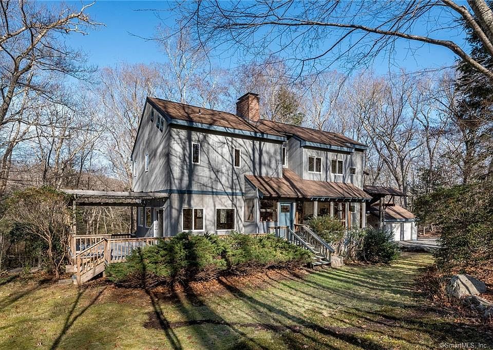 Introducing a charming contemporary home nestled in the countryside of Lyme, CT. This home is designed to bring the beauty of the outdoors inside with its oversized windows capturing scenic woodland views. Step into the kitchen, complete with a cozy fireplace, perfect for warmth and ambiance. The living room with the second of three fireplaces, opens up to a deck, overlooking the backyard. Ample windows continue to showcase nature's beauty throughout the home. For special occasions, there's a formal dining room with a charming picture window. A main level study/den provides a tranquil space with its own picture window offering meditative views of nature. The primary bedroom awaits with an ensuite bath, along with the delightful feature of its own fireplace, perfect for snuggling up on chilly nights or enjoying cozy mornings. Adjacent to the primary bedroom, you'll find a convenient space for an office or for hobbies. Additional features include two more bedrooms, a hallway bath, and a finished attic that offers a creative treehouse-like play area. The lower level boasts a finished and heated room in the walkout basement. Lastly, the deck overlooking the backyard is ideal for outdoor dining and entertaining. This home presents an opportunity to embrace a country lifestyle in the serene beauty of the rural and historic town of Lyme. Located halfway between New York and Boston.
