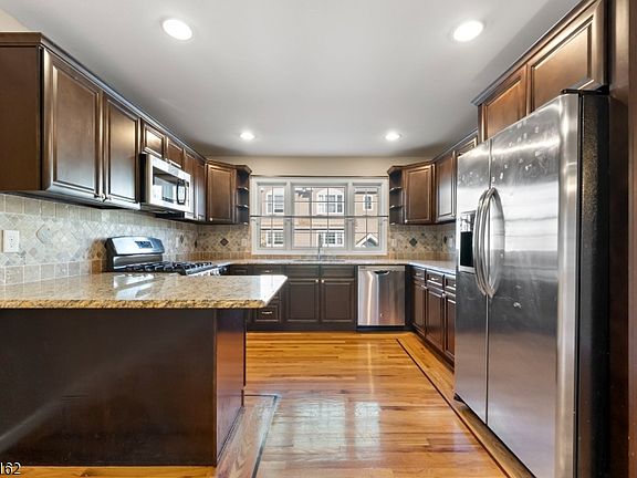 This immaculate townhome offers over 1,600 SF of modern living across three thoughtfully designed levels. Freshly painted throughout with recessed lighting, this home is truly move-in ready. The main level features beautiful hardwood floors and an open-concept layout, perfect for both everyday living and entertaining. The spacious kitchen includes granite countertops, ample cabinetry, and a peninsula for casual dining or meal prep. A bright dining area and a generous living room offer comfortable gathering spaces, while a convenient powder room adds functionality. The upstairs includes one of two great sized bedrooms with large double closet and the expansive primary suite with a custom walk-in closet and a private en-suite bath. The second-floor laundry eliminates the need to carry loads up and down stairs. The lower level includes a flex space ideal for a home office, or den, with sliding doors that lead to the cozy backyard. The attached garage offers additional storage or parking and EV Charging. Have peace of mind knowing the central air unit was replaced August 2025. Located less than a mile from the Bloomfield train station and with the jitney stopping just outside of community, commuting is simple. With low monthly maintenance fees and close proximity to Bloomfield's vibrant downtown, this property is an excellent opportunity for homeowners seeking style, space, and convenience