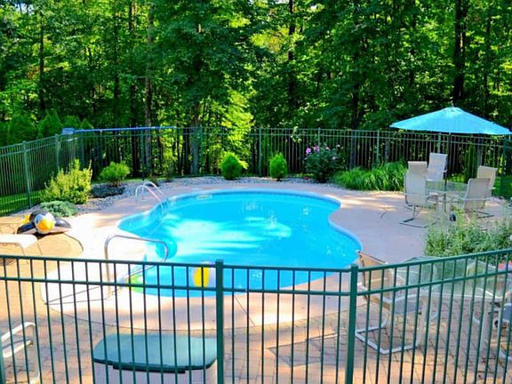 SPECTACULAR Brick Front 4BR 3.5BA Contemporary Center Hall Colonial Features IN-LAW QUARTERS w/ Kitchentte, FULLY FINISHED LOWER LEVEL & FENCED-IN HEATED IN-GROUND POOL Situated on Cul-de-Sac on 2.76 ACRES! NOT IN DEVELOPMENT! NO DUES! Ultra Spacious Home Offers Modern Center Island Eat-In Kitchen w/ Ample Cabinet Space & Built-In Desk! Formal Dining Room, Living Room Plus Family Room w/ Vaulted Ceilings & Floor-to-Ceiling Brick Fireplace! MASTER BEDROOM has Bath Suite w/ Corner Jacuzzi & Shower ! FULLY FINISHED LOWER LEVEL Walk-Out Offers KITCHENETTE, Living Room, Family Room, WORK-OUT ROOM, 4-SEASON SUN ROOM Plus Extra BONUS ROOM! Over-Sized 2-CAR GARAGE, Storage Shed, Deck & Private Back Yard! Located in Desirable PLEASANT VALLEY SCHOOL DISTRICT! Call Today for Your Private Showing!