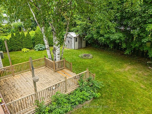 Open-concept kitchenLarge enclosed backyardSurrounded by mature treesSpacious deck