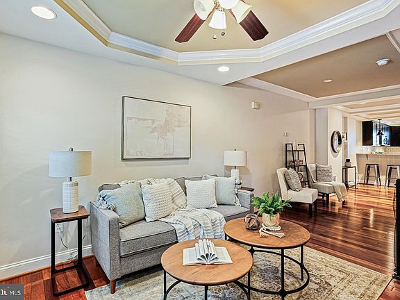 Step into this beautifully updated all-brick Patterson Park rowhome offering 2 bedrooms, 3 full baths, a private parking pad, and just over 1,200 sq ft of living space. Freshly painted and professionally staged, this sun-filled home welcomes you with hardwood floors, tray ceilings with crown molding, recessed lighting, and an exposed brick accent wall that adds warmth and charm to the open-concept main level. The kitchen features granite countertops, stainless steel appliances, a tile backsplash, and a breakfast bar—perfect for entertaining. The upper level includes two spacious bedrooms and two full baths, including a primary suite with access to a private deck. Extensive work has recently been done on the rear upper deck, providing a great space to relax or unwind. The finished basement offers a flexible recreation room, third full bath, and laundry area. Complete with a private parking pad and just blocks from Patterson Park, shops, restaurants, and commuter routes, this home blends style, function, and unbeatable location. Don't miss out on this gem!