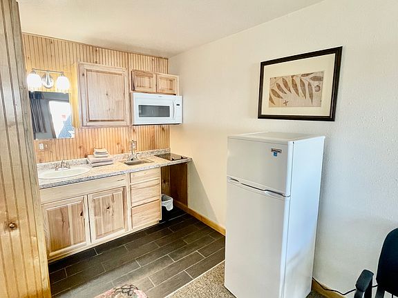 Microwave and stovetopFully furnished studio apartmentsCouch and dresserComfortable queen bedFull-size refrigerator