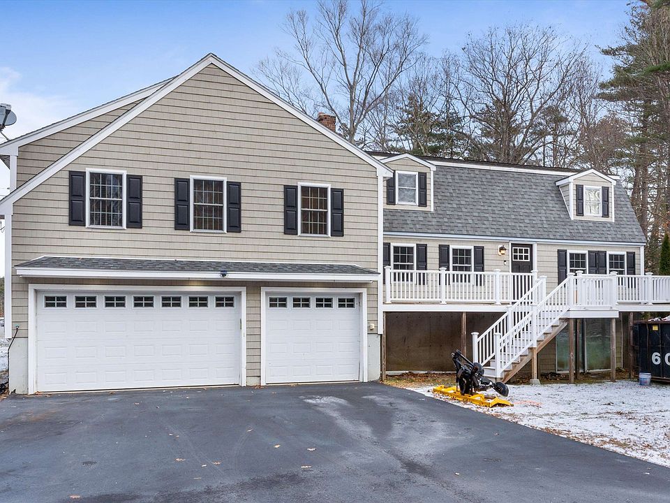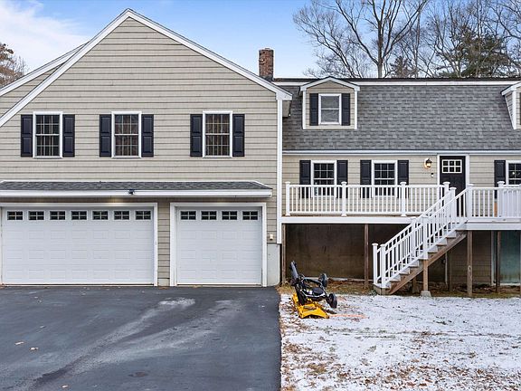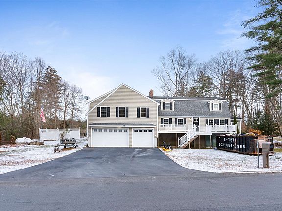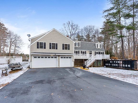 Welcome to your rural retreat in Chester, New Hampshire! This Gambrel-style home features 3 bedrooms, 2 baths, and a separate 1 bed, 1 bath in-law suite. Nestled beside a tranquil pond with water access and a convenient boat launch, this property is a haven for fishing and wildlife enthusiasts. The main house boasts an updated open kitchen and dining area with wood composite flooring. The living room features shiny wood flooring and a fireplace, creating a cozy ambiance. The family room offers a retreat with rustic wood paneling and berber carpeting, complemented by a wall of windows for abundant natural light. Upstairs, the primary bedroom spans from front to back to offer plenty of room for all your furishings. There is hardwood flooring throughout the second floor. The first floor has a newly updated 3/4 bathroom, while the second floor features an updated full bathroom. Above the three-car garage is a roomy in-law suite with a large multi-use room, full kitchen, private bedroom, and full bathroom. A mini barn in the backyard provides additional storage. Enjoy the outdoors on the deck overlooking the pond or cool off in the above-ground Gibraltar pool. This property offers a perfect blend of country living and modern amenities, creating a serene and versatile retreat for families or guests. Don't miss the opportunity to make this Gambrel gem your home in Chester, New Hampshire.