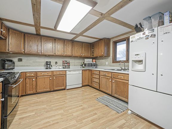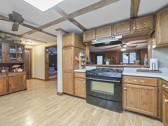 Ranch on an oversized, corner lot! This 3 bedroom, 2 bathroom ranch situated on a .42 acre lot has so much to offer. Inside you will find a large dining room open to the kitchen. Off of the dining room is the living room with plenty of space for furniture and relaxing. Split floor plan with 2 bedrooms and a bathroom on one side of the home. Master bedroom and full bathroom on the other side. Outside you will find a custom playground/fort that is included, chicken coop, outdoor storage shed & detached 2 car garage. Both house and garage have steel roofs. Call for your showing today!