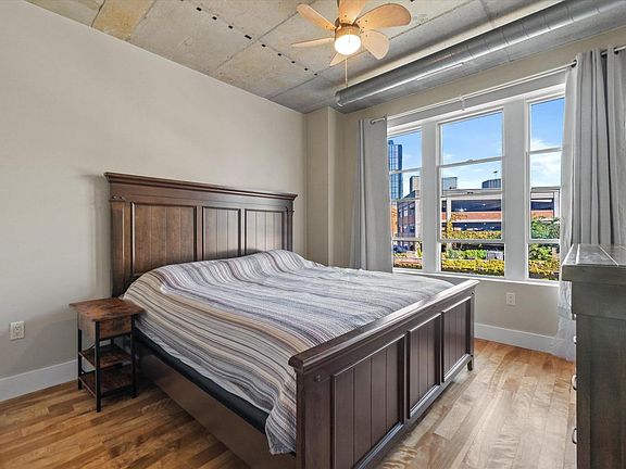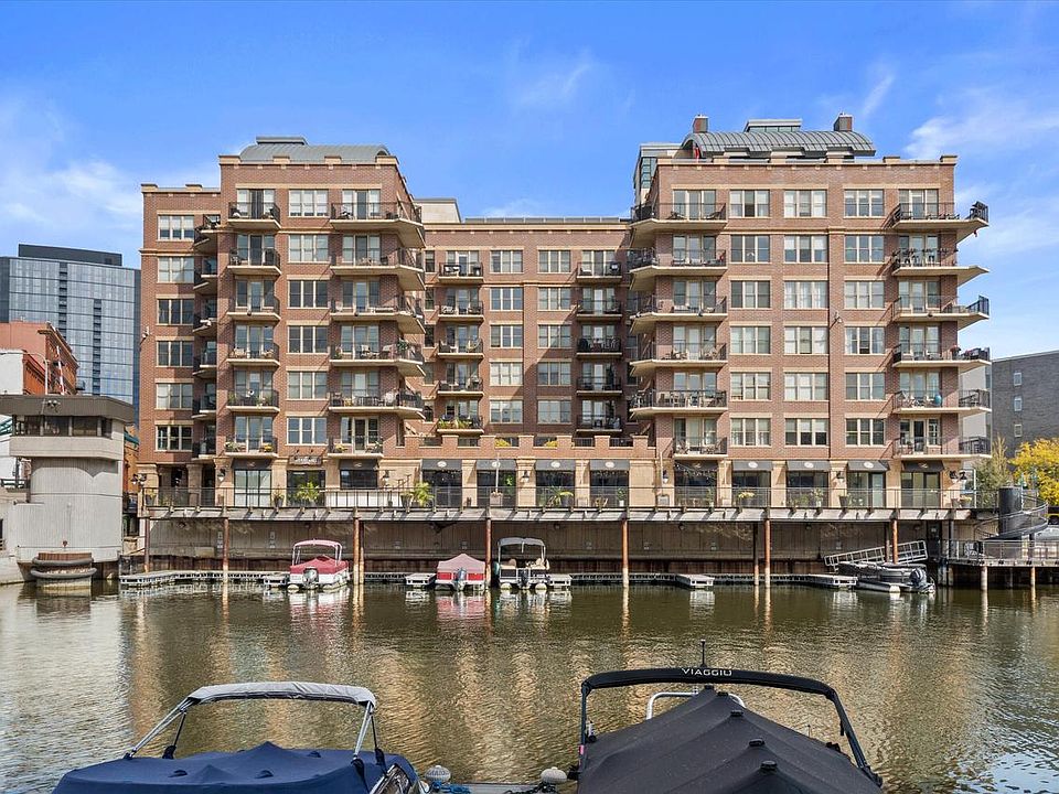 Check out this spacious 1 bedroom plus den in the historic Third Ward district of Milwaukee. So much to do right at your fingertips....shopping, dining and just relaxing and enjoying the river. Open floor plan featuring industrial concrete ceilings & exposed ductwork, ceiling fans, great views of Water Street. Updated kitchen with breakfast bar, loads of cabinets, granite countertops, SS appliances & tile backsplash. Beautiful and large bathroom with great tile work. Spacious bedroom with large closet. Den is perfect for home office or additional living space. In-unit laundry. Beautiful 2nd floor common courtyard overlooking the river. Two pets allowed! Condo fee includes: heat, air, water, cable, internet.
