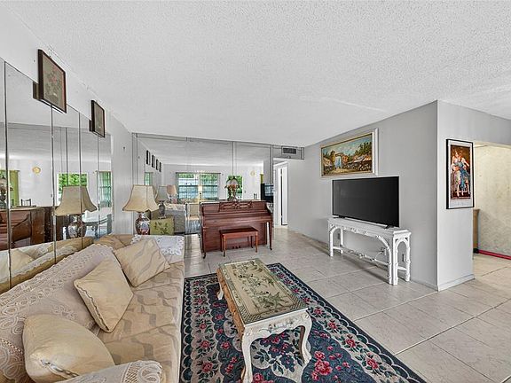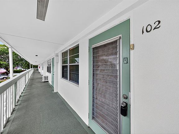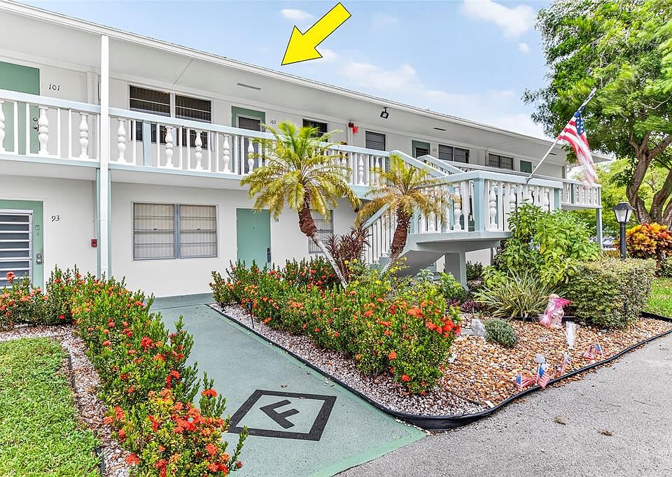 This Great Condition, Pre-Loved Condo comes furnished & features 2 Bedrooms & 1.5 Bathrooms with Central A/C (new in 2023), Plenty of Closet Space, & the Best parking spot: directly in front of the building! Screened-in Patio features a serene nature's view. Newport F is in the Heart of Century Village and has great reserves. Century Village is an Extremely Active 55+ Community offering Resort-Style Amenities: Cafe, Clubhouse, Tennis, Pickleball, Craft/Painting Workshops, Hobby Classes Fitness Centers, Free Movies, Free Shuttles