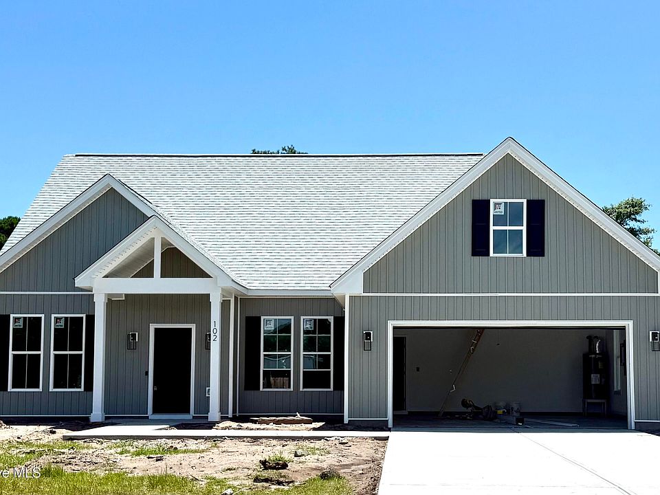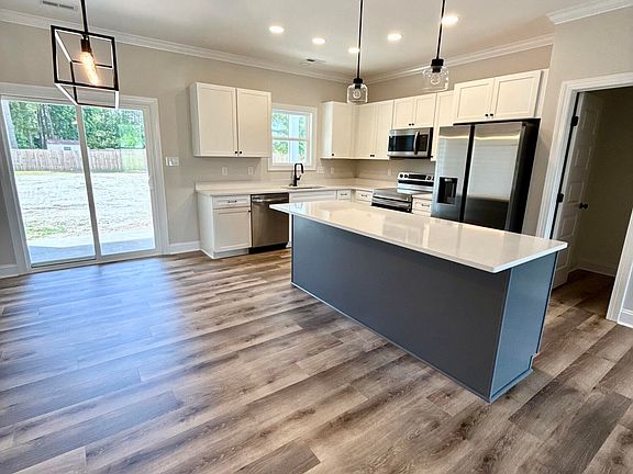 Located in the desirable water-access community of Kings Harbor, this home is perfect for boating enthusiasts, with a private boat ramp just minutes away. This new construction house offers 3 bedrooms with an office, and 2 baths across 1700 sq/ft. Inside you will find an open concept layout, perfect for entertaining and a split bedroom design for privacy. The kitchen features white shaker cabinets with contrasting gray island, quartz countertops, and stainless steel Samsung appliances. A convenient walk-in pantry and a pull-out trash complete the space. The primary bedroom has a private en-suite with a tiled walk-in shower, double vanity and spacious walk-in closet. The remaining bedrooms are generously sized with ample closet space and share the second bathroom which features another double vanity. Enjoy the convenience of LVP throughout the house, plus added features like a drop zone, separate laundry room with additional sink, and pull-down stair attic space. The exterior will be completed with a partially sodded yard, privacy fence, and a Ring doorbell for added security.