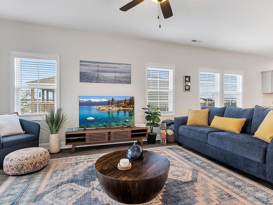 The kitchen boasts granite countertops and spacious areas perfect for entertaining. The home features a convenient layout with three bedrooms and two bathrooms. The primary bedroom includes a tiled bathroom and generous closet space. You'll appreciate the unique experience of waking up to the sunrise and enjoying the sunsetthis rental is truly a rare find.