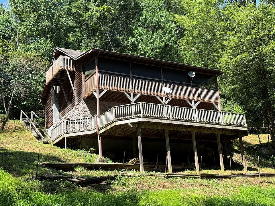 Mountain Retreat on 4 Acres – 102 Overland Trail, Fancy Gap, VA Nestled in the serene Blue Ridge Mountains, this 2-bedroom, 2-bath retreat at 102 Overland Trail combines comfort, privacy, and natural beauty. Set on approximately four acres across five lots, the property offers a rare opportunity to own a generous tract of land in one of Fancy Gap's most desirable mountain communities. Mature hardwoods and sloping landscapes surround the home, creating a peaceful haven just minutes from the Blue Ridge Parkway. This story-and-a-half home features warm and inviting living spaces designed for both relaxation and entertaining. The kitchen offers granite counter tops, while thoughtfully placed windows fill the home with natural light and frame glimpses of the surrounding mountains. An upstairs flex space provides endless possibilities—perfect as an office, family room, or sleeping loft. The basement already includes a full bath and offers the opportunity to finish additional living space to fit your needs. Outdoor living is just as appealing with a spacious deck, covered porch, and multiple balconies that invite you to enjoy misty ridge-line mornings or evenings under starlit skies. The home is move-in ready and only needs a little TLC, giving you the opportunity to make it your own while enjoying its comfortable design right away. With its blend of privacy, convenience, and mountain charm, this property is ideal as a full-time residence, a weekend getaway, or a short-term rental. Outdoor enthusiasts will appreciate the easy access to hiking, scenic overlooks, golf, and local wineries—all just minutes away. Don't miss this chance to own a timeless Blue Ridge retreat on 4 acres in the heart of Fancy Gap.