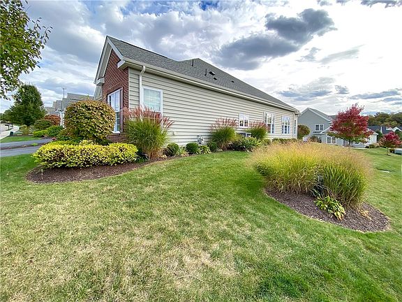 Beautiful patio home situated on a lushly landscaped corner lot! The bright, open floor plan was thoughtfully designed and features lots of windows, crown moldings, high ceilings, hardwood floors & brand new carpet! Huge great room w/vaulted ceiling & custom built-ins, gas fireplace, open to adjacent sunroom w/vaulted ceiling & sliding door to rear patio w/retractable awning. Upgraded kitchen w/stainless steel appliances, granite countertops and breakfast bar open to the dining area. 1st floor master bedroom has a built-in window seat, walk-in closet with custom organizers and luxurious ceramic tile bath w/access to the 1st floor laundry. Second floor has loft/den, guest bedroom, full bath and 16x12 storage room. Situated in Sewickley Ridge, Active 55+ community, 4-Star 10000 sqft clubhouse w/fitness & billiard rooms, library, large inground pool & hot tub overlooking nature conservancy; bocce ball, pickleball/tennis court, community garden, many daily & weekly clubs & activities.