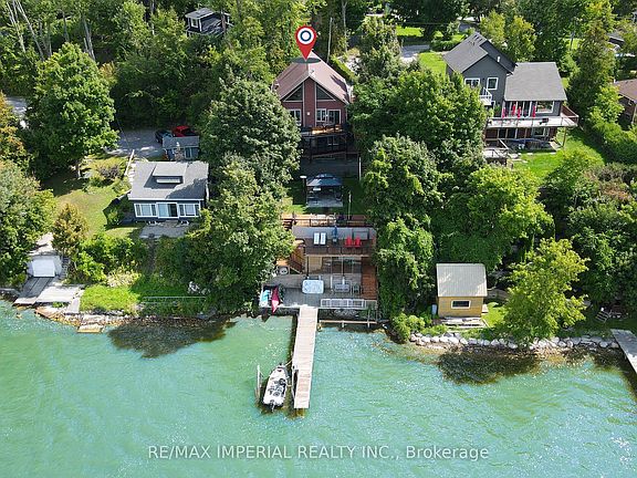 One-of-a-kind chalet-style waterfront home on Lake Scugog! Premium swimmable hard-sand shoreline with breathtaking sunsets & direct access to the Trent-Severn Waterway. Year-round fun fishing, paddle boarding, swimming & snowmobiling! Quality craftsmanship throughout: vaulted ceilings, exposed beams, hardwood floors & open-concept main level. Family room & dining room feature soaring 18-ft ceilings with walk-out to lakeview deck. Newly completed 4-level decks lead from the backyard down to the private dockperfect for BBQs, entertaining, exercise or relaxing at sunset. Main floor includes a convenient bedroom. Loft rec room w/catwalk captures panoramic views. Lower level offers a gas fireplace, sunroom walk-out, primary w/heated ensuite, 2 more bedrooms & 6-pc bath. Finished 340 sq ft walkout basement with 5th bedroom & sep entrance. Additional features: Drilled Well (2022), Natural Gas on street & Fibre Optic Internet. A rare lakeside retreat!