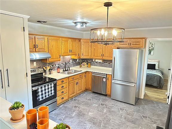 SOUTH SHORES – COMPLETELY MOVE-IN READY! NO STEPS! This 3-bedroom home is sharp, sharp, sharp! You’ll love the stylish updates and easy living this South Shores gem offers. The kitchen features custom-built cabinets, all SS appliances stay + WD. Dining room opens to a spacious patio—perfect for grilling or relaxing by the fire pit under the stars. The fenced backyard includes two storage sheds (8x10 and 10x16) with concrete floors and overhead doors, plus an additional fenced area ideal for a garden, pets, or whatever fits your lifestyle. Located close to shopping, restaurants, and recreation—this home truly has it all! Thermo quality replacement windows, completely repainted, and new vinyl tile throughout. This house is perfect for any one wanting stunning home with only 1 step into the front door; attached garage with opener. SOUTH SHORES is an area of high demand. Homes with few steps are in high demand. GRAB THIS GEM BEFORE ITS GONE!