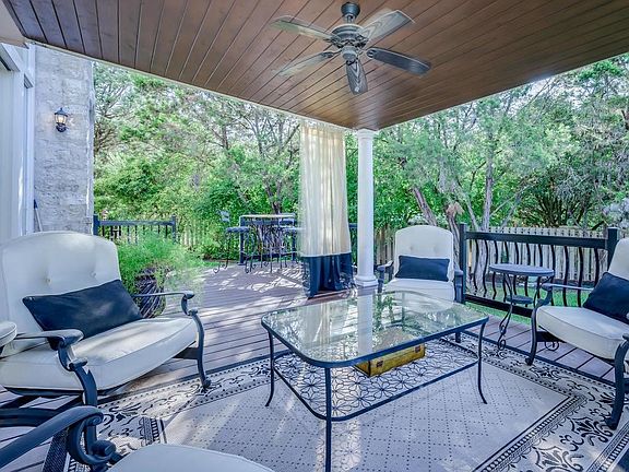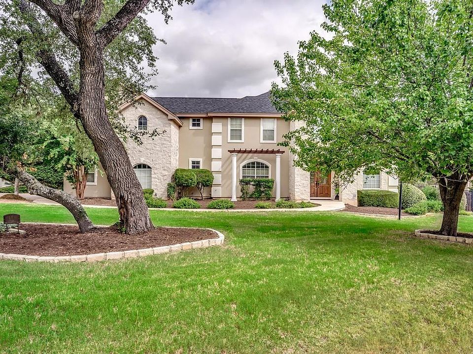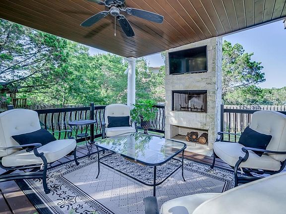 Stunning home on corner lot/quiet cul de sac in Heart of Lakeway. New exterior stucco paint. Natural light radiates through large windows in living area w/ fireplace. Updated kitchen. Formal & casual dining. Master suite w/ updated master bath. 2 bdrms upstairs w/ private baths. Large game room w/ wood flooring. Covered patio area w/ fireplace & TV. Spacious private backyard great for entertaining Refrigerators & W&D convey Close to Lakeway Park w/ trails & lake activities Minutes to Hill Country GalleriaRestrictions: Yes Sprinkler Sys:Yes