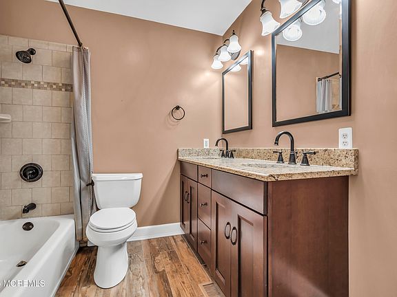 Welcome to the charming Primrose Lane Townhomes in Brick! This 2 bedroom, 1.5 bathroom townhouse also features a partially finished basement for extra storage. Enjoy the gleaming hardwood floors throughout the living and dining area. The eat-in kitchen features tile flooring, stainless steel appliances, formica countertops, and a door to the outside. The spacious primary bedroom boasts 2 closets and carpet. Inside the full bathroom, there are dual sinks and a tile floor. Step outside onto the concrete patio for fresh air and appreciate the close access to the GSP, beaches, and boardwalks. The unit comes with one parking space. Community amenities include a common area, landscaping, pool, snow/trash removal, and more! Schedule your showing today! This one won't last!