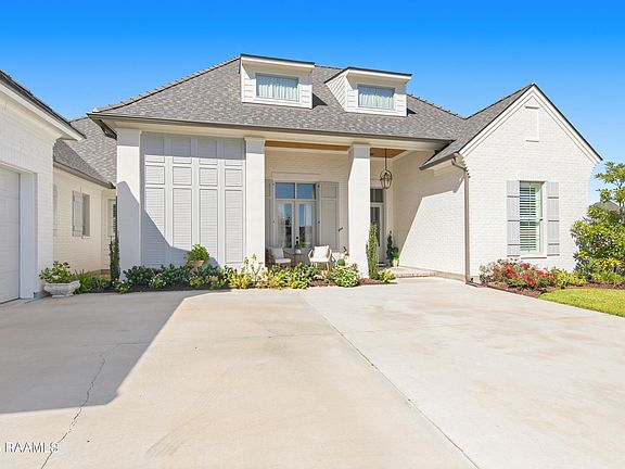 Welcome to your dream home. This stunning single-story residence offers 2,865 square feet of thoughtful design, featuring 4 bedrooms, 4.5 baths, and a dedicated office( can be a 5th bedroom). Tucked away on a quiet cul-de-sac with no thru traffic, this home provides both privacy and convenience. The three-way split floor plan gives everyone their own space, and three of the bedrooms include en suite baths and walk-in closets. Floor-to-ceiling windows flood the home with natural light, and varied ceiling heights, crown molding, and gorgeous wood floors add character and charm throughout. The kitchen is truly lovely, showcasing Taj Mahal quartzite countertops, stainless steel appliances including a double oven and refrigerator, a pot filler, and plenty of custom cabinetry. The walk-in pantry is unbelievable and will quickly become a favorite space. The living room features a beautiful built-in entertainment center, and the office, primary bedroom and laundry room all include antique doors that bring warmth and personality to the home. Every detail has been carefully selected, from the elegant tile work to the stylish hardware, fixtures, and mirrors throughout the bathrooms and living areas. The finishes are simply charming and give the home a refined yet welcoming feel. The outdoor living area is oversized and designed for gatherings, offering a screened-in and tiled outdoor with full kitchen, gas log fireplace, and a fully fenced backyard. Extras include plantation shutters and blinds, partial gutters, a flower bed sprinkler system, a security system, and a spacious front porch. A convenient drop zone by the garage, two large storage rooms, and a generous laundry room adds to the thoughtful layout. Located just minutes from restaurants, shopping, and hospitals, this two-year-old home truly has it all. Schedule your showing today and experience the comfort and beauty this home has to offer.