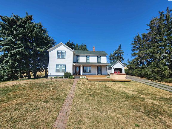 MLS# 270069 Amazing farmhouse style home on over 4 acres! This home features a beautifully updated kitchen with all matching stainless steel appliances, laundry room/mudroom, a large dining room with fireplace, a huge living room, a bathroom and large bedroom all just on the main floor. Upstairs has 3 more bedrooms and another large bathroom. Natural light fills the home with beauty and highlights the stunning wood floors. Outside your front door, enjoy sitting on the deck or in your hot tub taking in the view of Skyline and vast rolling fields. Down the hill is your quanset hut with concrete floors and wood fireplace. There is also power to the hut and your RV pad with full hookups where a mobile home used to sit. Behind the house is your root cellar and large shed. There are so many other wonderful features about this property that you just have to come and see for yourself. What a gem!