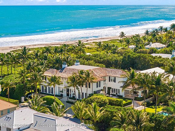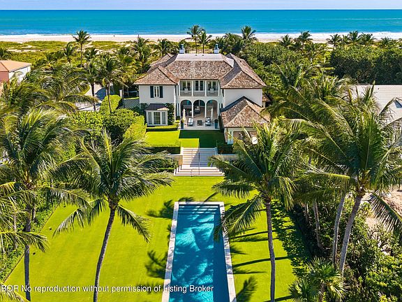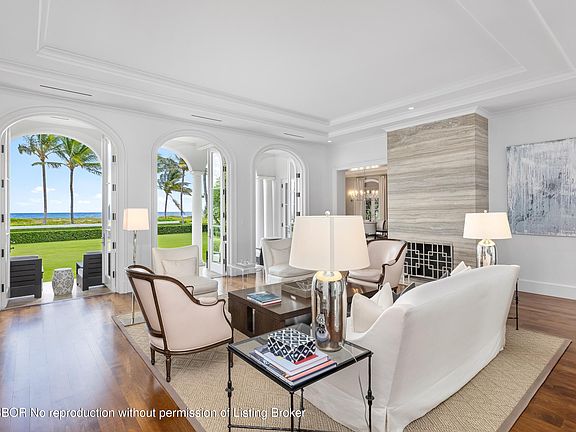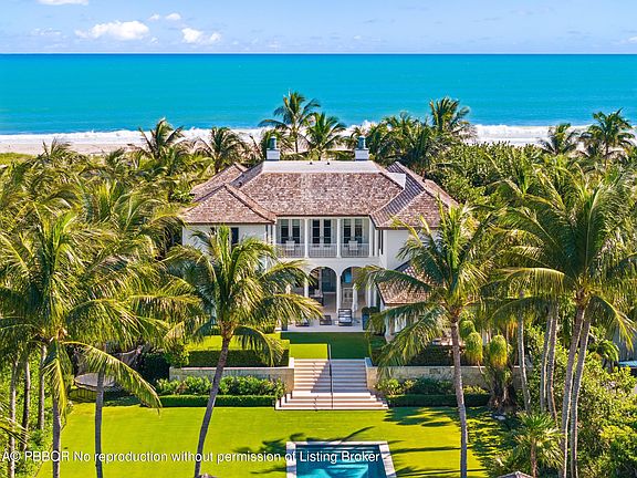 Gorgeous Oceanfront Estate designed by Pat Segraves of SKA Architect+Planner. Perfectly situated on 35,500+/- square foot lot with 120'+/- of Ocean frontage. Sophisticated and pristine Colonial Estate with beachfront cabana featuring 6 bedrooms, 8 full baths, and 2 powder rooms. Thoughtful design and refined finishes throughout including stunning marble, beautiful hardwood flooring, and detailed woodwork. Oceanfront living room features beautiful marble fireplace. Stunning waterfront library with exquisite paneling and coffered ceilings. Oversized formal dining room overlooking ocean with beautiful ceilings leads to wet bar with wine fridge. Elegant marble kitchen with chef's island and breakfast nook leads to family room. Primary Suite features stunning Ocean views, vaulted ceilings, dual baths and closets, and waterfront balcony. Additional highlights include game room, gym, media room, and 4 car garage. Spectacular outdoor spaces including oversized backyard, oceanfront loggia, pool loggia with BBQ, and resort-style pool. Serene North End location with beautiful, wide beaches.