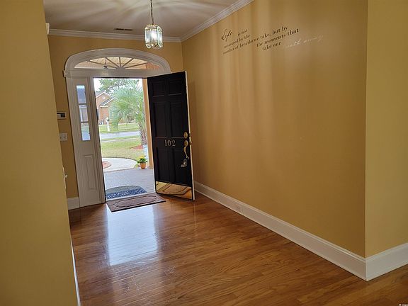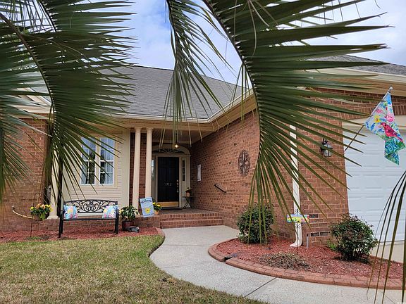 It is rare for homes in The Commons at Forest Lake to come on the market so do not delay seeing this all-brick, custom built ranch on Burning Ridge Golf Course. The home has been well-maintained for the last 30 years by the same owners who have enjoyed the peaceful neighborhood located conveniently close to Conway Medical Center, Coastal Carolina University, Horry Georgetown Technical College, minutes from the historic and vibrant downtown Conway and of course just a short drive to the beautiful Atlantic Ocean beaches! The palm trees, azalea bushes and curbscaped flower beds enhance all the outdoor living spaces of an inviting front porch, back patio, and spacious screen porch. Enter the home into a large foyer with hardwood flooring and your eye immediately is drawn to the whole back of the house full of light with two sliding doors, windows galore, wood-burning fireplace, vaulted ceilings and a spacious dining/great room combination. The eat-in kitchen has granite counters, tiled backsplash, stainless steel appliances, more cabinets than you can fill, plus a separate pantry! The split-bedroom floorplan has two guest rooms on one side that share a hall bathroom. The back guest room has a slider and private patio to enjoy the treelined backyard. The front guest room has custom built-in shelving and transom windows for an added touch of light. The primary bedroom is on the other side of the house with another slider exiting onto a screen porch for a relaxing sunrise or sunset. There are two very large closets and an updated bathroom with walk-in tiled shower, corner garden soaking tub, double vanity, private water closet, and linen closet. Storage galore throughout the house with two coat closets, cabinets in the laundry room, and 2 car garage with pull down attic stairs. Some light fixtures have recently been changed and the house was professionally cleaned top to bottom. It is ready for new owners to add your personal touch.