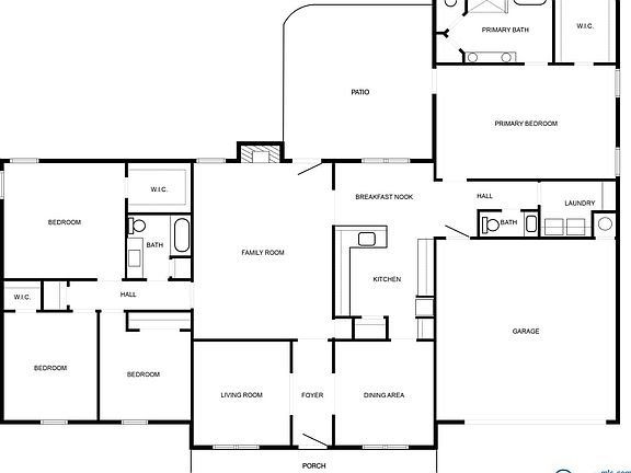 Counter-height snack barGas fireplacePatio accessIsolated master suiteTwo shedsTile flooringDouble sinks